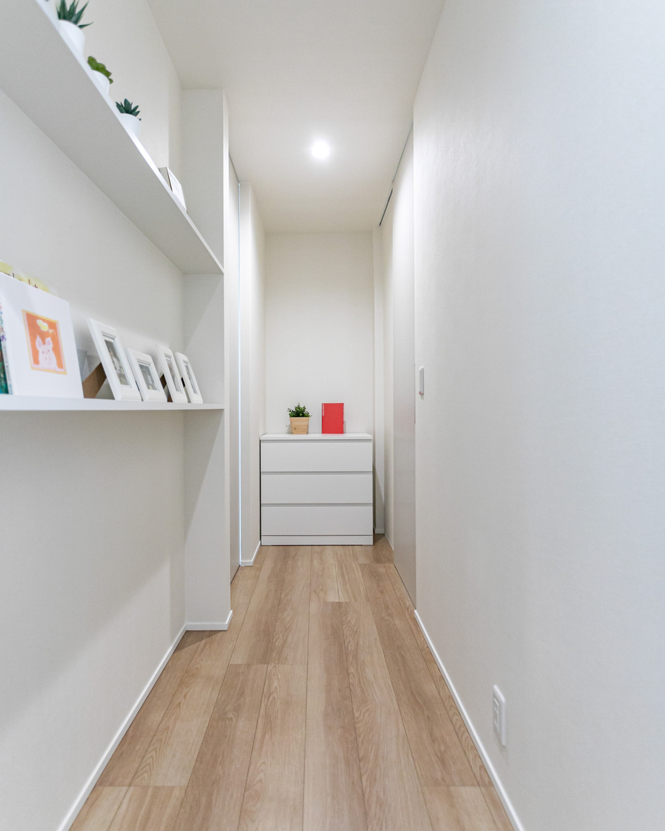 玄関横のシューズクロークから続くファミリー玄関に、コートクロークを設けて花粉やウィルスをシャットダウン!お子様のお稽古バッグやペットのお散歩バッグも収納できます